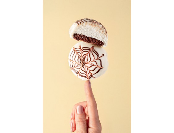 Бисквит с насыщенным шоколадным вкусом, сочетающийся с легким и нежным кремом-суфле, с ярко выраженным творожным вкусом.