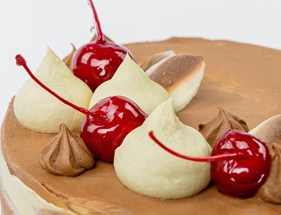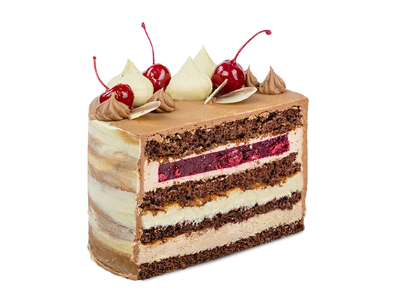 Первый кусочек — яркая вишня, раскрывающая свою насыщенность в прослойке ягодного компота. Дальше – нежность и неповторимость французского муссового крема Баваруа на основе молочного шоколада. А дальше раскрывается наконец главная особенность, «изюминка» торта — по-летнему свежая, ароматная мята, находящая свое отражение в прослойке ганаша внутри и украшения извне. Довершает и гармонично сбалансирует эти сочетания нежный и сочный шоколадный бисквит.